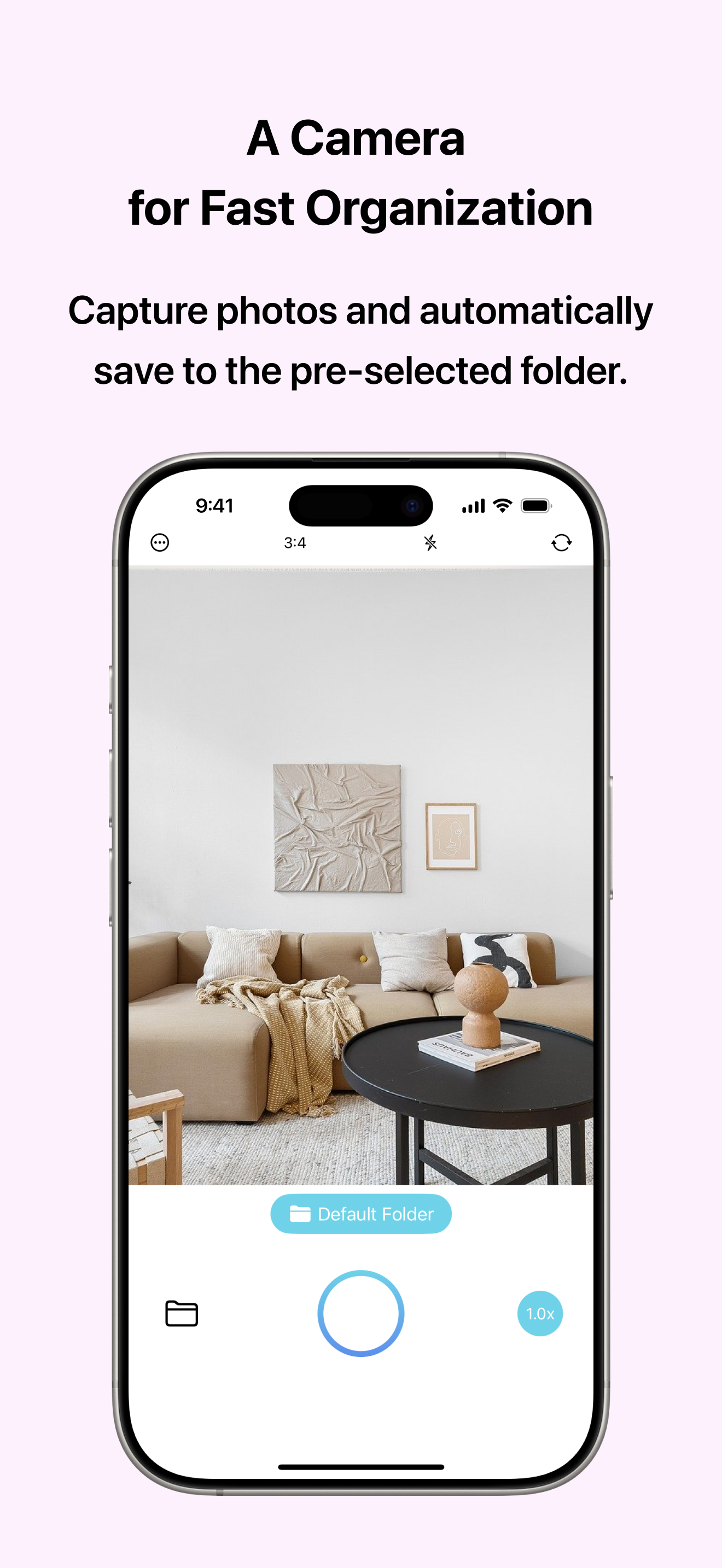 Capture photos and automatically save to the pre-selected folder.